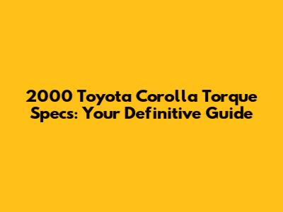 2000 Toyota Corolla Torque Specs: Your Definitive Guide