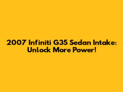 2007 Infiniti G35 Sedan Intake: Unlock More Power!