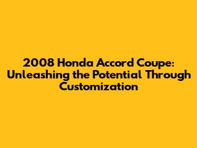 Hey car enthusiasts! Are you a proud owner of a 2008 Honda Accord Coupe? If so, you've got a fantastic car with loads of potential just waiting to be unleashed. This article will dive deep into the world of 2008 Honda Accord Coupe modifications, upgrades, and tuning options, helping you transform your ride into a head-turning machine. We'll explore everything from simple aesthetic enhancements to performance-boosting modifications, ensuring you have all the information you need to make informed decisions and create the Accord Coupe of your dreams. Get ready to explore the exciting possibilities of customizing your 2008 Honda Accord Coupe and make it truly your own!