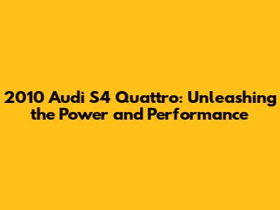 Beyond just horsepower, it's important to look at other performance metrics to fully understand the capabilities of the 2010 Audi S4 Quattro. These include acceleration, top speed, and handling characteristics.