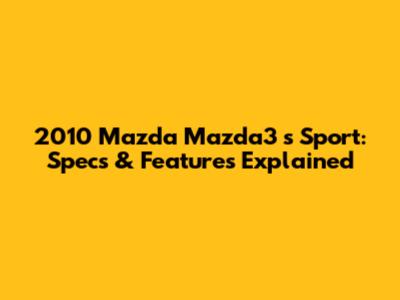 2010 Mazda Mazda3 S Sport: Specs & Features Explained