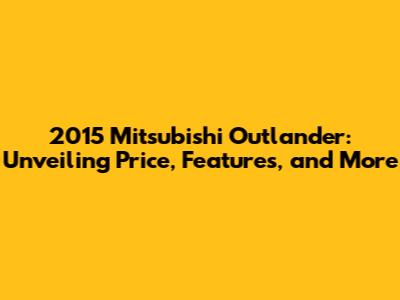 2015 Mitsubishi Outlander: Price, Features, And More
