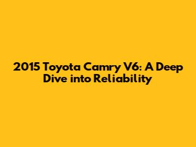 2015 Toyota Camry V6: Is It Reliable?