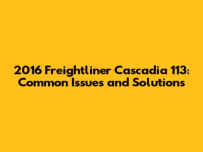 2016 Freightliner Cascadia 113: Common Issues And Solutions