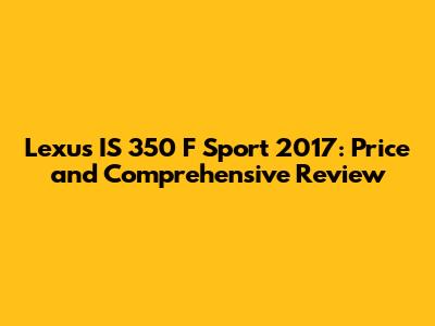 Hey guys! Are you curious about the Lexus IS 350 F Sport 2017? Specifically, you want to know about the price, what makes it special, and whether it's a good buy. Well, buckle up because we're diving deep into everything you need to know about this sporty sedan. Let's get started!