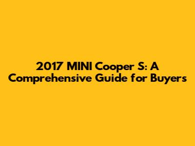 Alright, if you're seriously considering a 2017 MINI Cooper S, here are a few things to keep in mind when shopping: First, check the car's history. Get a vehicle history report to ensure it doesn't have any major accidents or issues. Next, inspect the car thoroughly. Look for any signs of wear and tear, and pay close attention to the engine, transmission, and suspension. A test drive is a must. Feel how the car handles, and make sure everything functions as it should.