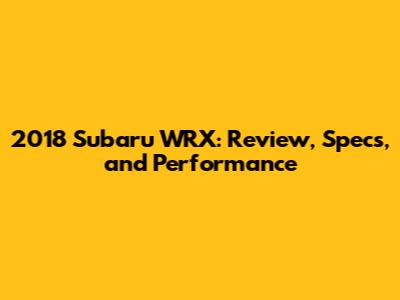 2018 Subaru WRX: Review, Specs, And Performance