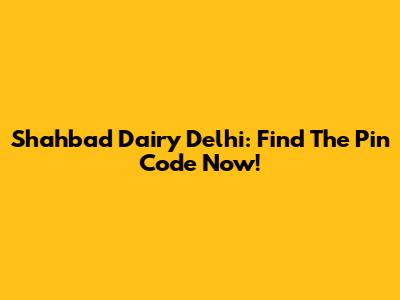 Shahbad Dairy Delhi: Find The Pin Code Now!