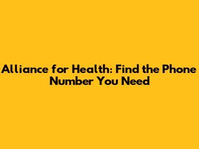 Alliance For Health: Find The Phone Number You Need