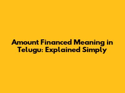 Amount Financed Meaning In Telugu: Explained Simply
