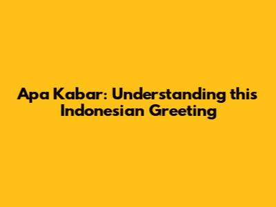 Apa Kabar: Understanding This Indonesian Greeting