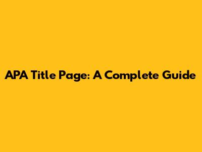 APA Title Page: A Complete Guide