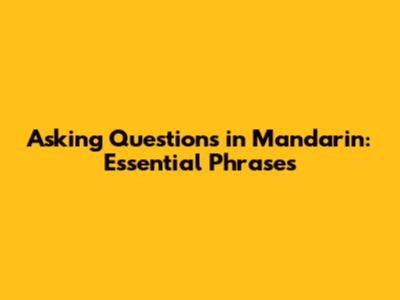 Asking Questions In Mandarin: Essential Phrases
