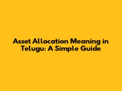 Asset Allocation Meaning In Telugu: A Simple Guide