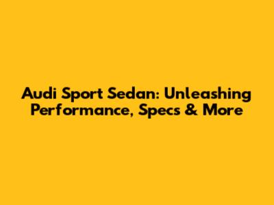 Audi Sport Sedan: Performance, Specs & More