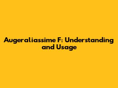 Augeraliassime F: Understanding And Usage
