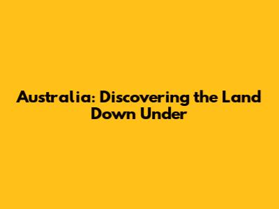 Australia: Discovering The Land Down Under