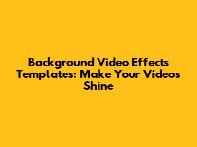 Background Video Effects Templates: Make Your Videos Shine