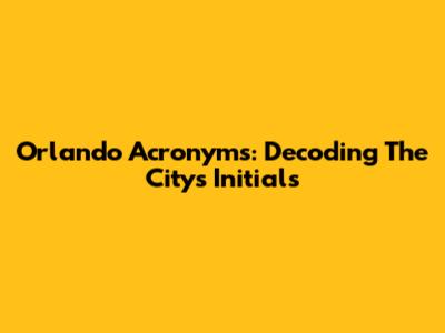 Orlando Acronyms: Decoding The City's Initials