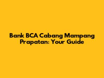 Hey guys! Looking for the Bank BCA branch in Mampang Prapatan? You've landed in the right spot! Whether you're needing to handle some serious banking or just a quick ATM run, knowing the details of your local branch is super handy. This guide will give you all the essential info about the BCA Mampang Prapatan branch, making your banking experience smooth and easy.