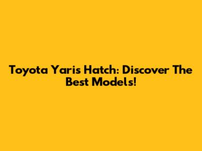 Toyota Yaris Hatch: Discover The Best Models!