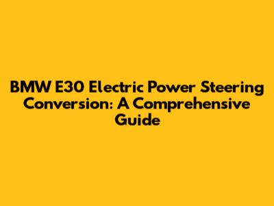 Converting your BMW E30 to electric power steering can significantly enhance your driving experience. With improved efficiency, reliability, and customizable steering feel, an EPS conversion is a worthwhile upgrade for any E30 enthusiast. By following this comprehensive guide, you can confidently tackle the conversion process and enjoy the benefits of modern steering technology in your classic BMW.