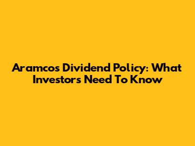 Aramco's Dividend Policy: What Investors Need To Know