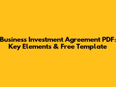 Business Investment Agreement PDF: Key Elements & Free Template