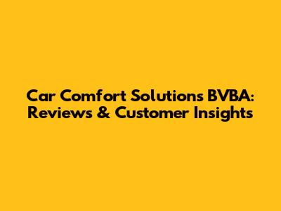 Car Comfort Solutions BVBA: Reviews & Customer Insights