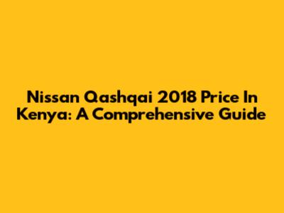 Nissan Qashqai 2018 Price In Kenya: A Comprehensive Guide