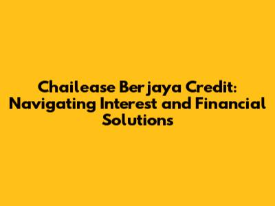 Chailease Berjaya Credit: Understanding Interest & Financial Solutions