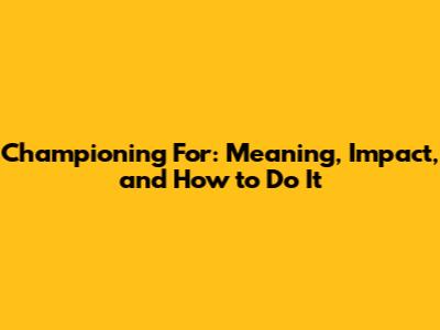 Championing For: Meaning, Impact, And How To Do It
