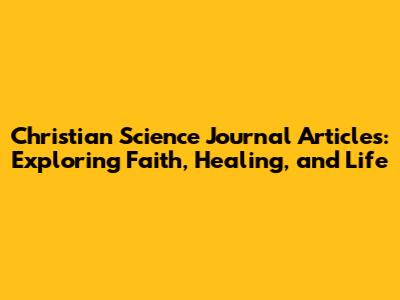 Hey everyone, let's dive into something pretty cool: Christian Science Journal articles. If you're curious about faith, healing, and living a better life, you've come to the right place. These articles are like a treasure trove of insights, experiences, and perspectives that can really get you thinking and maybe even change the way you see things. Whether you're a long-time follower, brand new to the ideas, or just someone who's intrigued, there's something here for you. We're talking about a rich tradition of spiritual exploration, and the Christian Science Journal is a key part of that. These articles provide a window into the lives of people who've embraced Christian Science, and the profound impact it's had on them. So, let's unpack what makes these articles special and how they can inspire and inform us all. We'll explore the core themes, the different types of articles you'll find, and how they offer hope and guidance to anyone looking to deepen their faith and understanding of life.