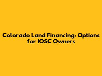 Colorado Land Financing: Options For IOSC Owners
