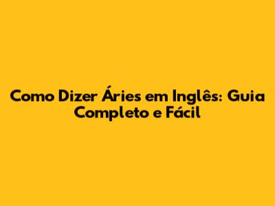 Como Dizer Áries Em Inglês: Guia Completo E Fácil