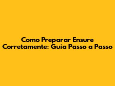 Como Preparar Ensure Corretamente: Guia Passo A Passo