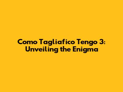Como Tagliafico Tengo 3: An In-Depth Look
