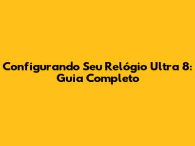 Configurando Seu Relógio Ultra 8: Guia Completo