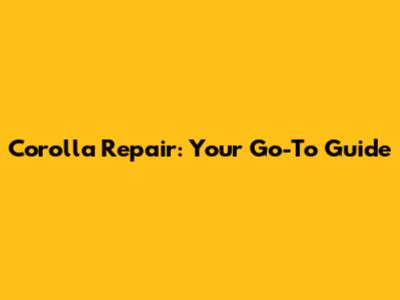 Corolla Repair: Your Go-To Guide