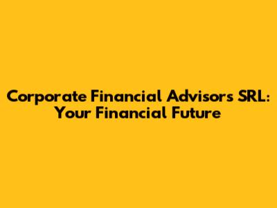 Corporate Financial Advisors SRL: Your Financial Future