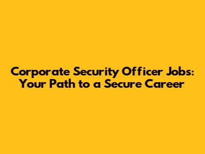 Corporate Security Officer Jobs: A Comprehensive Guide