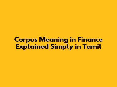 Corpus Meaning In Finance Explained Simply In Tamil