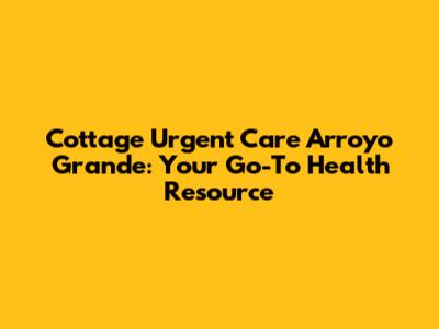 Hey everyone, if you're ever in a pinch and need medical attention ASAP in Arroyo Grande, you'll want to know about Cottage Urgent Care. It's a lifesaver, especially when you can't get in to see your primary care physician right away. Think of it as a bridge between the emergency room and your regular doctor's office. This guide is all about Cottage Urgent Care in Arroyo Grande, what they do, the services they offer, and why they're a fantastic resource for the community. So, let's dive in, shall we?