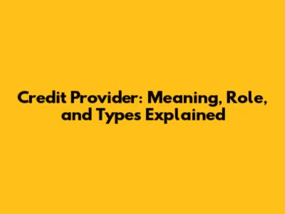 Credit Provider: Meaning, Role, And Types Explained
