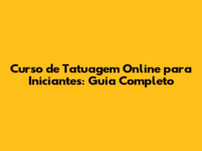 Curso De Tatuagem Online Para Iniciantes: Guia Completo