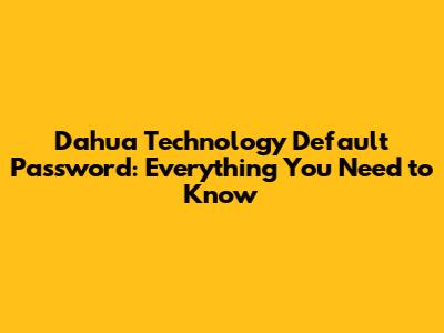 Dahua Technology Default Password: Everything You Need To Know