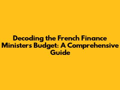Decoding The French Finance Minister's Budget: A Comprehensive Guide