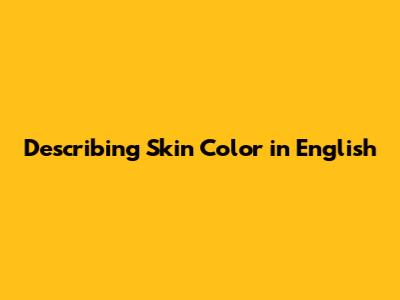 Describing Skin Color: A Guide To English Vocabulary