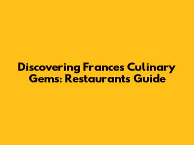 Discovering France's Culinary Gems: Restaurants Guide
