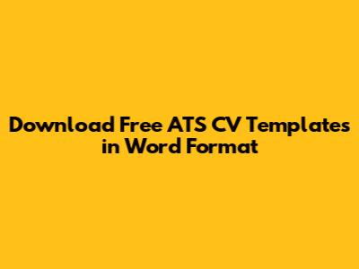 Download Free ATS CV Templates In Word Format